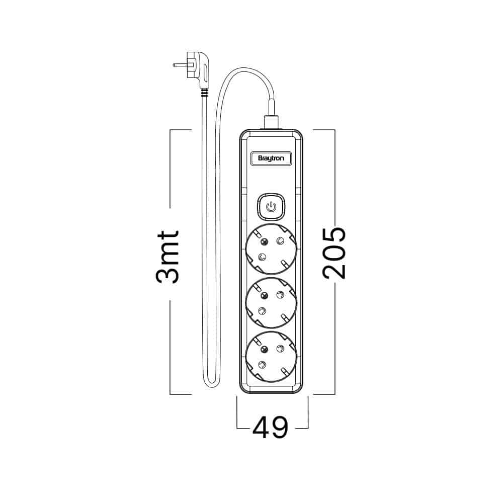 Prenosiva utičnica 3x schuko s kabelom 1,5mm2 / 3m i prekidačem bijela BRAYTRON