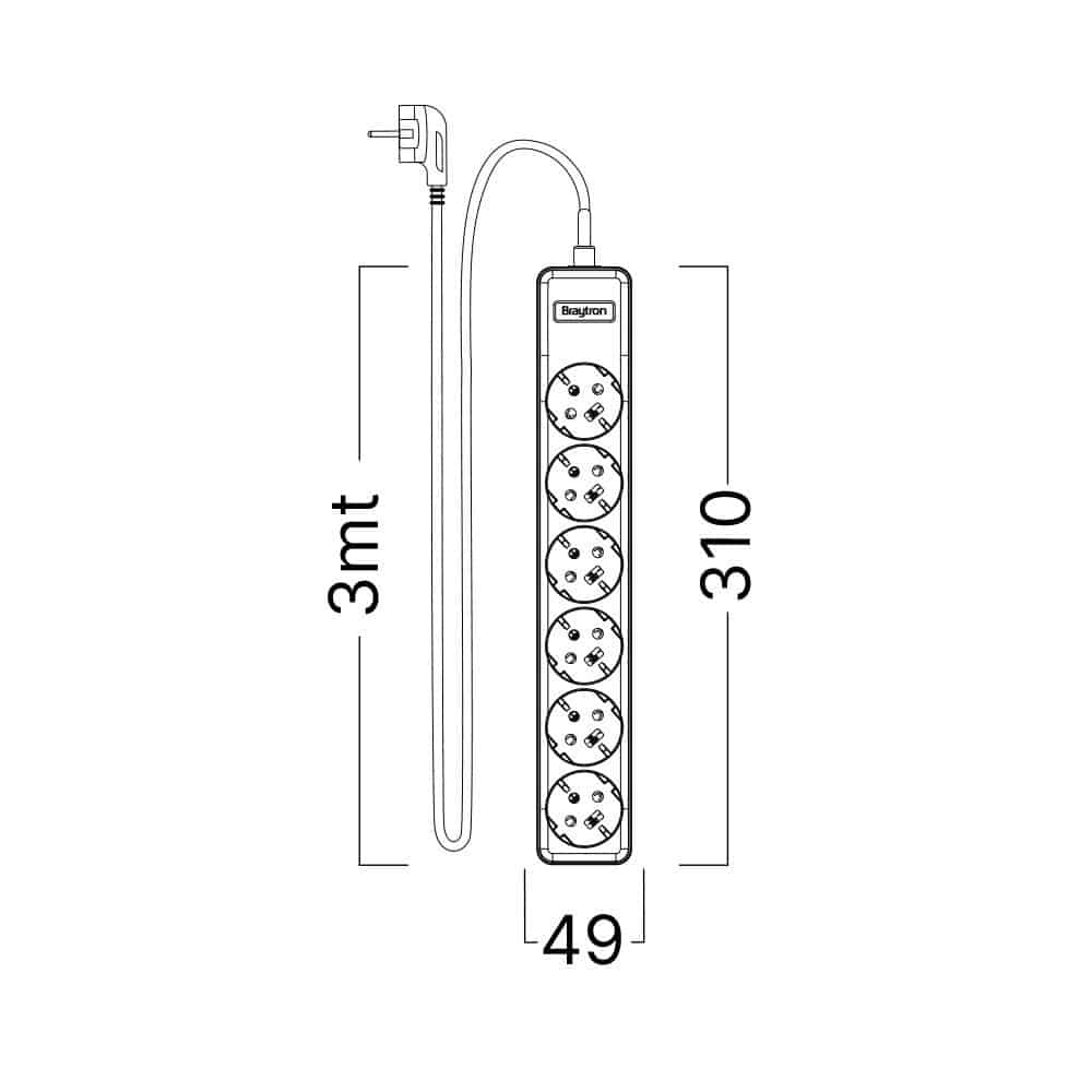 Prenosiva utičnica 6x schuko s kabelom 1,5mm2 / 3m bijela BRAYTRON